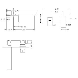 Смеситель для раковины встраиваемый из латуни хром Wasserkraft 4645