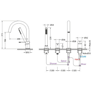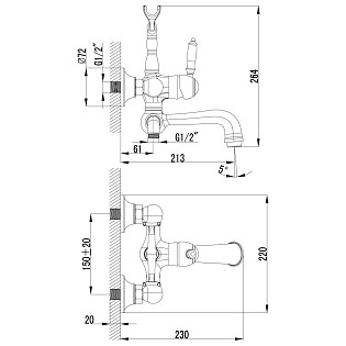 Смеситель для ванны однорычажный с душевым гарнитуром хром Vitra Memoria A42334