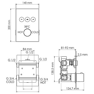 Смеситель для ванны и душа встраиваемый из латуни хром Wasserkraft 5844 Thermo