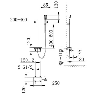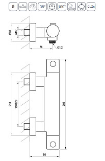 Смеситель для душа настенный термостатический черный Ravak Puri PU 033.20-150 X070188