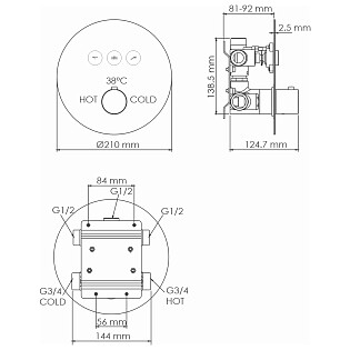 Смеситель для ванны и душа встраиваемый термостатический черный Wasserkraft 7444 Thermo