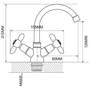 Смеситель для кухни двухвентильный хром Ammore A5185-1