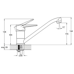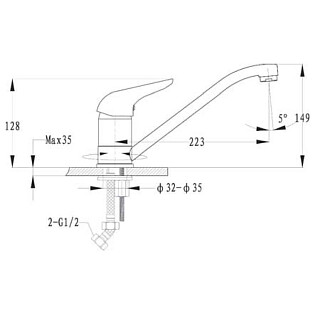 Смеситель для кухни двухвентильный хром D-Lin D151819-1