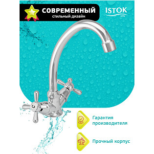 Смеситель для кухни латунный двухвентильный с поворотным изливом хром Istok life Luxe 0402.774