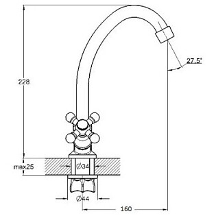 Смеситель для кухни двухвентильный хром Ammore A5181-1