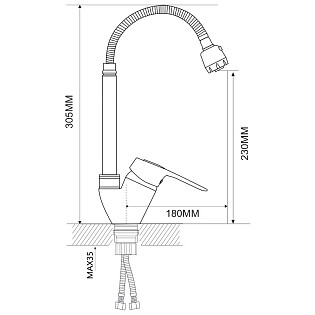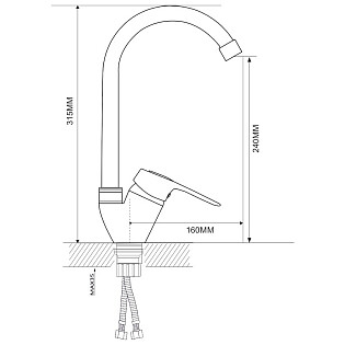 Смеситель для кухни однорычажный с гибким изливом хром Solone LOP4-B043
