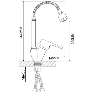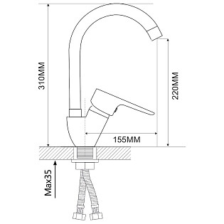 Смеситель для кухни двухвентильный с гибким изливом хром D-Lin D151807-Q