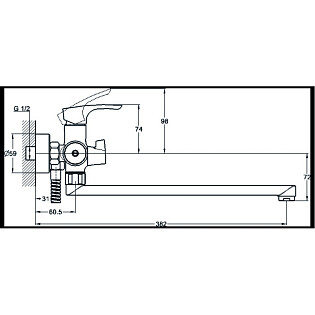 Смеситель для ванны универсальный однорычажный хром Solone FAB6-A020