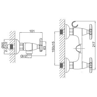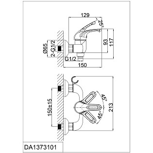 Смеситель для душа двухвентильный с душевым гарнитуром хром D&K Hessen Goethe DA1383141