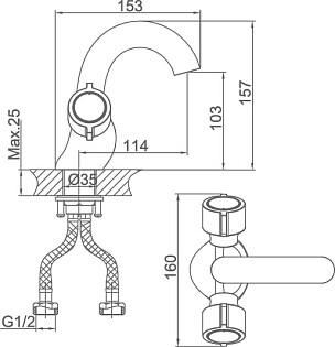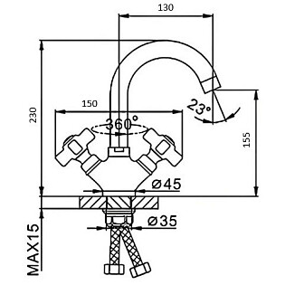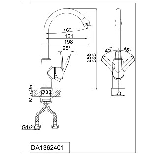 Смеситель для кухни двухвентильный черный D-Lin D153808-A