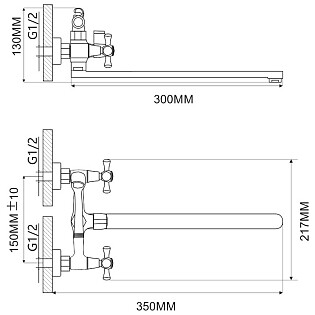 Смеситель для ванны двухвентильный с душевым гарнитуром хром Ammore A4688