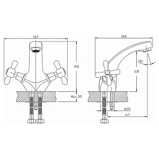 Смеситель для раковины двухвентильный хром D-Lin D110806