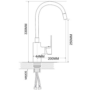 Смеситель для кухни с гибким изливом черный, хром D-Lin D150628-1C
