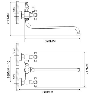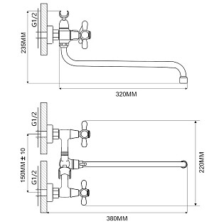 Смеситель для кухни настенный с гибким изливом хром D-Lin D142810-T