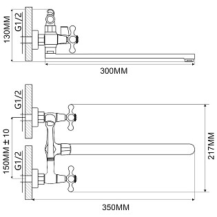 Смеситель для ванны двухвентильный с душевым гарнитуром хром Ammore A4385