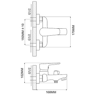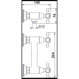 Смеситель для душа двухвентильный с душевым гарнитуром хром D&K Hessen Hercules DA1423141