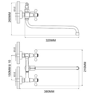 Смеситель для ванны двухвентильный с душевым гарнитуром хром Ammore A4381