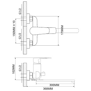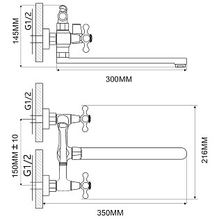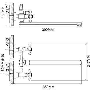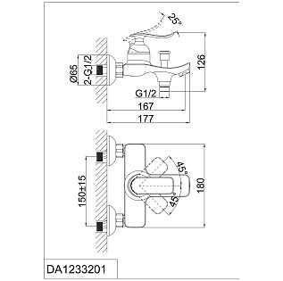 Смеситель для ванны двухвентильный с душевым гарнитуром хром Ammore A4481