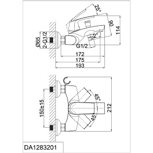 Смеситель для ванны с душевой лейкой и коротким изливом хром D-Lin D130409