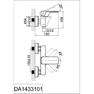 Смеситель для душа встраиваемый вентильный хром D&K Hessen Lorsch DA1414801