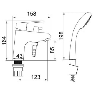 Смеситель на борт ванны однорычажный с душевым гарнитуром хром D-Lin D131362