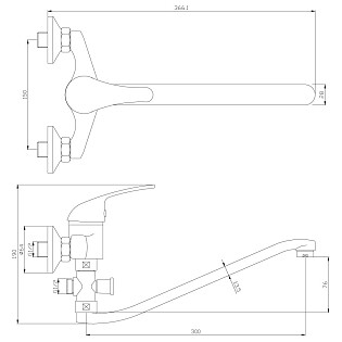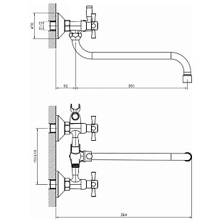 Смеситель для ванны универсальный с S-образным изливом хром Rossinka Y40-35
