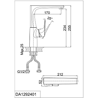 Смеситель для кухни однорычажный черный, хром D-Lin D157315-1