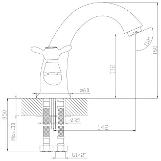 Смеситель для ванны одноручный хром Rossinka RS29-31