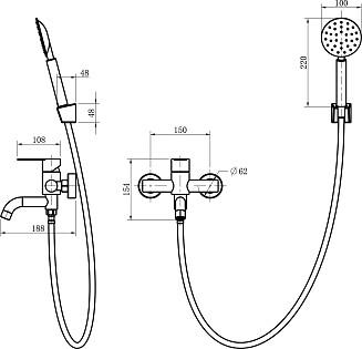 Смеситель для ванны с душевой лейкой и длинным изливом хром D-Lin D147364