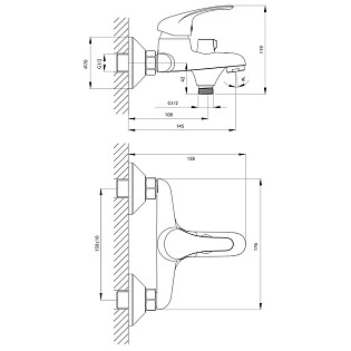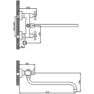 Смеситель для ванны встраиваемый двухвентильный хром D&K Hessen Grimm DA1384801