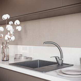 Смеситель для кухни однорычажный с гибким изливом графит D-Lin D158367-S