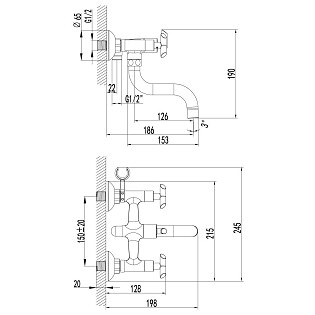 Смеситель для ванны с душевой лейкой и длинным круглым изливом хром D-Lin D146422