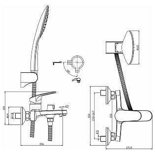 Смеситель для ванны настенный однорычажный с душевым гартитуром черный D-Lin D147366-A