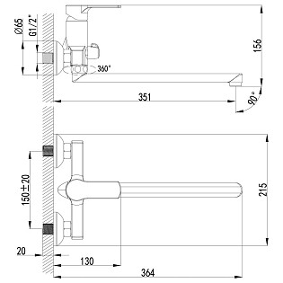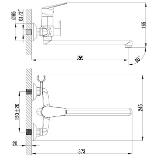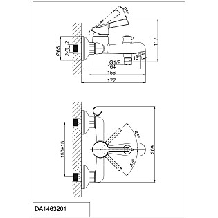 Смеситель для ванны с душем настенный с аэратором хром Stworki "Нордборг" ND-03cr