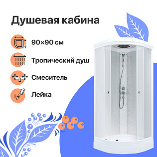 Душевая кабина четверть круга с низким поддоном 90х90 см белая Diwo "Новгород" Щ0000055611