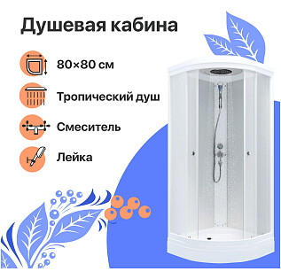 Душевая кабина 80х80 см с низким поддоном белая Diwo "Новгород" New Щ0000064661