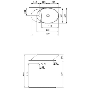 Раковина накладная из литьевого мрамора овальная 40х58 см белая Ravak Solo XJX01358000