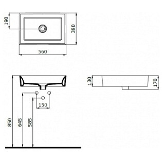Раковина накладная керамическая прямоугольная 37х55 см белая Ravak Ceramic 550 R Slim