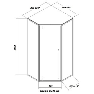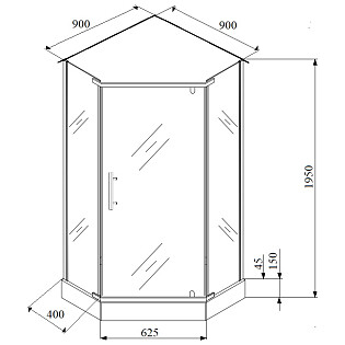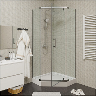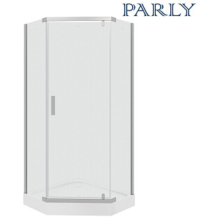 Душевой уголок пятиугольный с низким поддоном 90х90 см хром Parly ZPE911