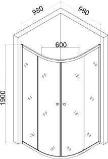 Душевой уголок четверть круга с низким поддоном 100х100 см хром Diwo "Коломна"