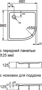 Душевой уголок четверть круга с низким поддоном 100х100 см черный Diwo "Смоленск"