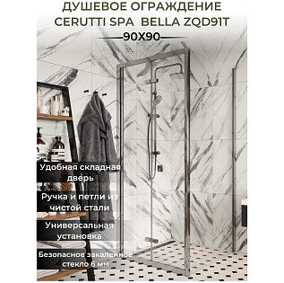 Душевой уголок квадратный 90х90 см хром Cerutti SPA Bella ZQD91T