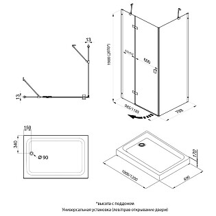 Душевой уголок прямоугольный 100х70 см черный Creto Tenta 123-WTW-100-C-B-8, 123-SP-700-C-B-8