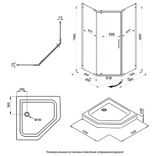 Душевой уголок пятиугольный 100х100 см белый, черный Triton "Дека-Блэк" Щ0000062933