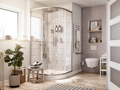 Душевой уголок пятиугольный с низким поддоном 90х90 см матовый хром Diwo "Ростов"