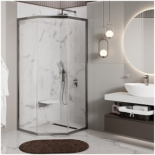 Душевой уголок пятиугольный 90х90 см хром Wasserkraft Naab 86S11