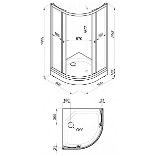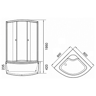 Душевой уголок 90х90 см Diwo "Анапа" с душевым лотком хром CK Drain 1105-0015
