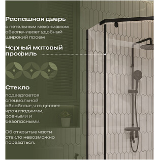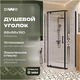 Душевой уголок 90х90 см черный, прозрачный Diwo "Казань" Щ0000067280