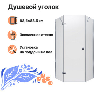Душевой уголок пятиугольный 90х90 см хром Diwo "Оренбург" Щ0000055602