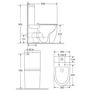 Унитаз напольный безободковый белый D&K Matrix DT1397016